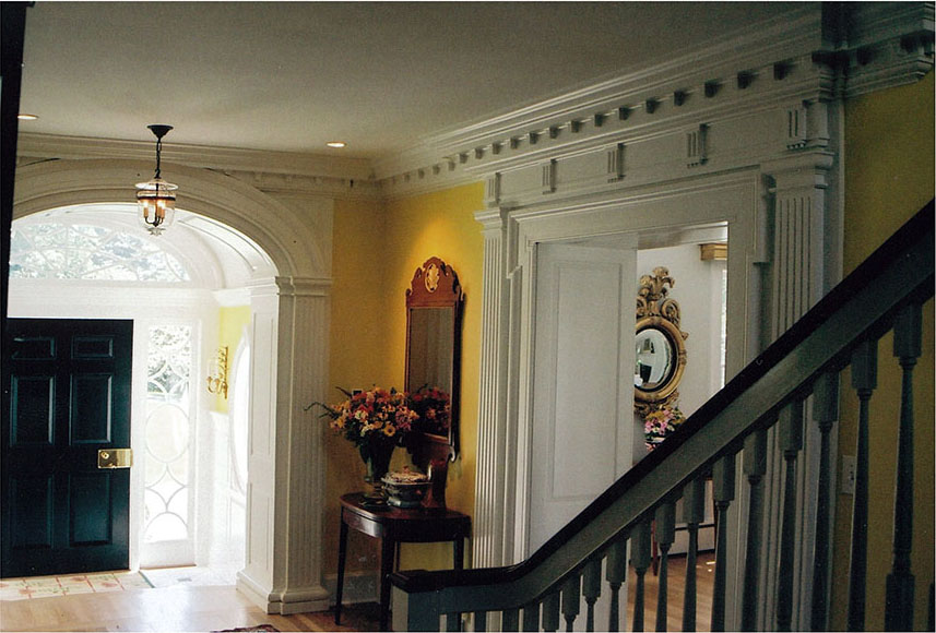 - Handcrafted dentil molding and custom trim profiles.