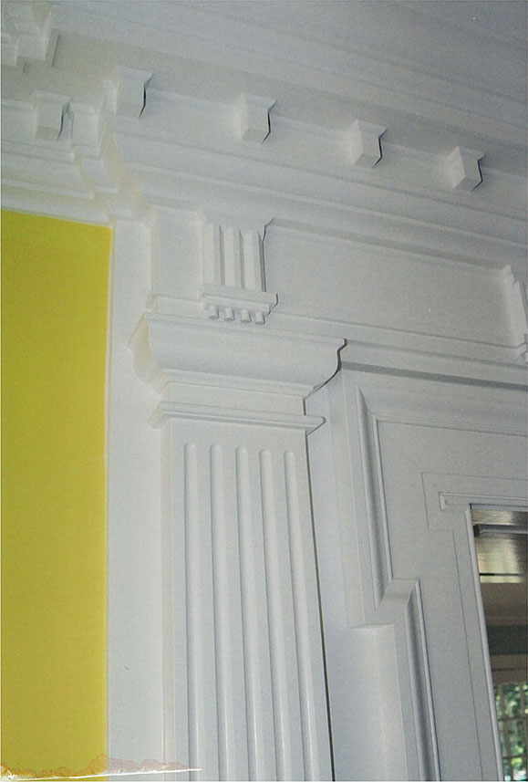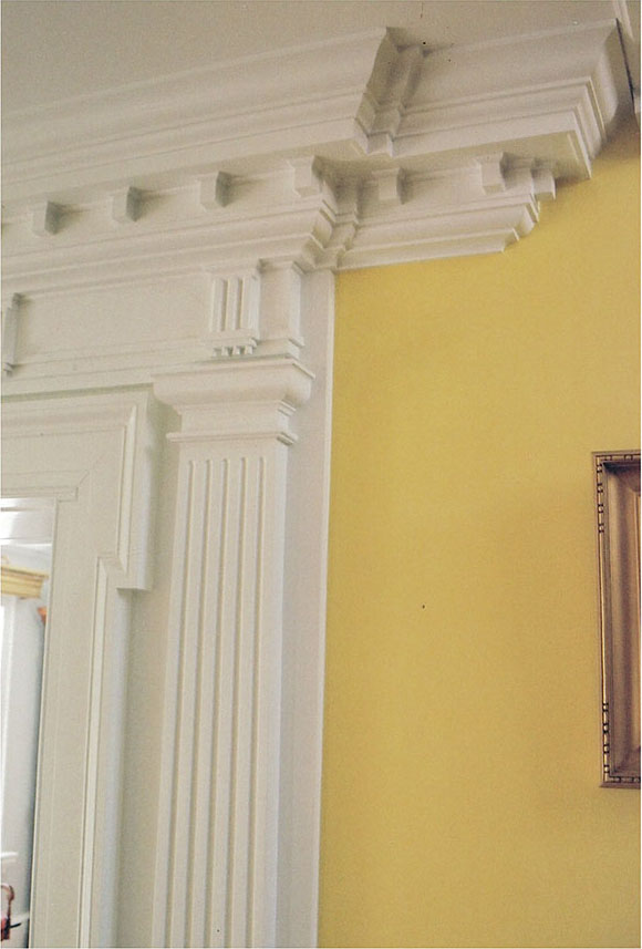 - Fluted and tapered column work.